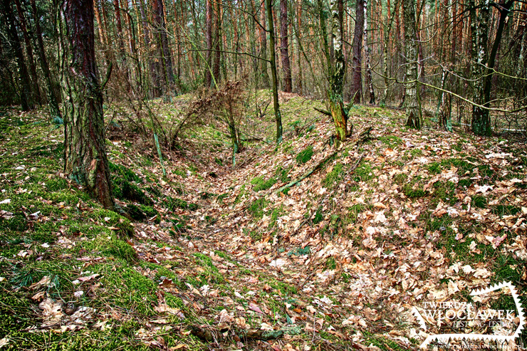 Większość okopów została wykopana ręcznie przez robotników przymusowych. Ciągnęły się wokół Włocławka setkami kilometrów i co ciekawe można ich pozostałości oglądać do dziś w wielu miejscach, szczególnie w lasach. Gdy jesteśmy na grzybach lub spacerze w okolicach Witoszyna, Warząchewki, Piekielnej Góry czy w lasach między Brześciem Kujawskim, Wieńcem, Brzeziem a Włocławkiem zwrócą naszą uwagę płytkie rowy ciągnące się zygzakiem na dużych dystansach. To właśnie pozostałości okopów. Widoczne są nawet na laserowych skanach powierzchni (mam nadzieję, że Geoportal nie obrazi się za wykorzystanie tego zrzutu ekranu…).