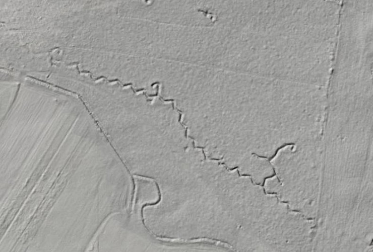 Widok pozostałości okopów na mapach laserowych LIDAR